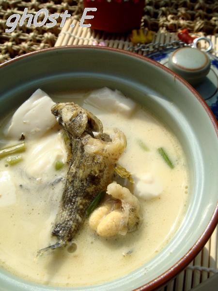制作过程:先在锅中倒入油,锅热之后倒入塘鲤鱼,煎一下后然后倒入料酒,加入水,盐,姜丝,然后烧开后2分钟倒入豆腐,然后再烧2分钟,撒些白胡椒粉,葱花,一碗白色的塘鲤鱼就好了。
