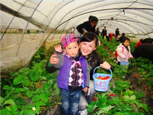总结:此次自驾游总计花费:310元。总的来说基本满意,难得出来郊游满放松的,也许是在城市里待惯了,偶尔这样放松一下是件惬意的事情。下面晒一张儿子采草莓的照片: