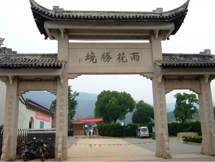 雨花胜境是苏州东山的一个景点,位于东山镇古街东段的茅长岭山坞中,景区占地500亩,共有18处小景点,其前身是雨花禅院,2002年苏州东山花巨资修复了有400余年历史的明代“雨花胜境”。景区主要包括: