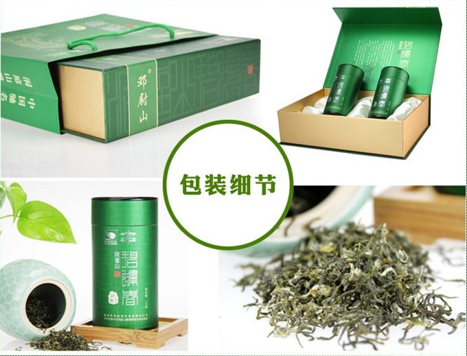 包装礼盒:可自行选择礼盒,一般二级碧螺春礼盒内包装用铁盒包装,当然你也可以选择瓷瓶或者高档的包装,一般为半斤装一礼盒,一盒两罐。